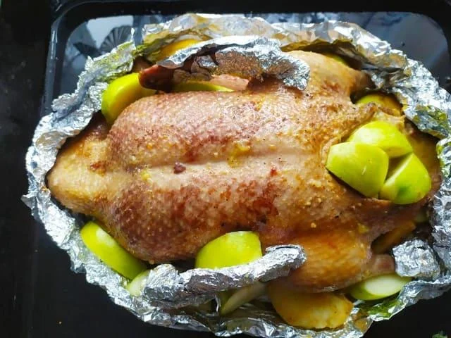 Качка з яблуками, запечена в духовці